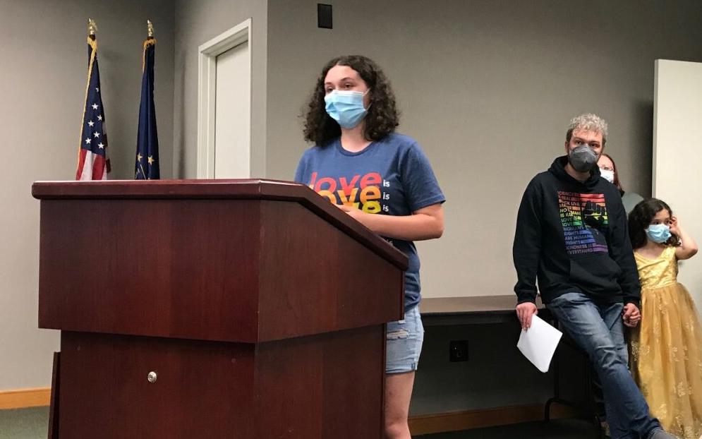 Pendleton Heights sophomore Tai Wills, the only student to speak, said even though she has support at home, that of teachers may be all the support some LGBT students get. The flags, she said, told LGBT students that those teachers provided a safe haven.
